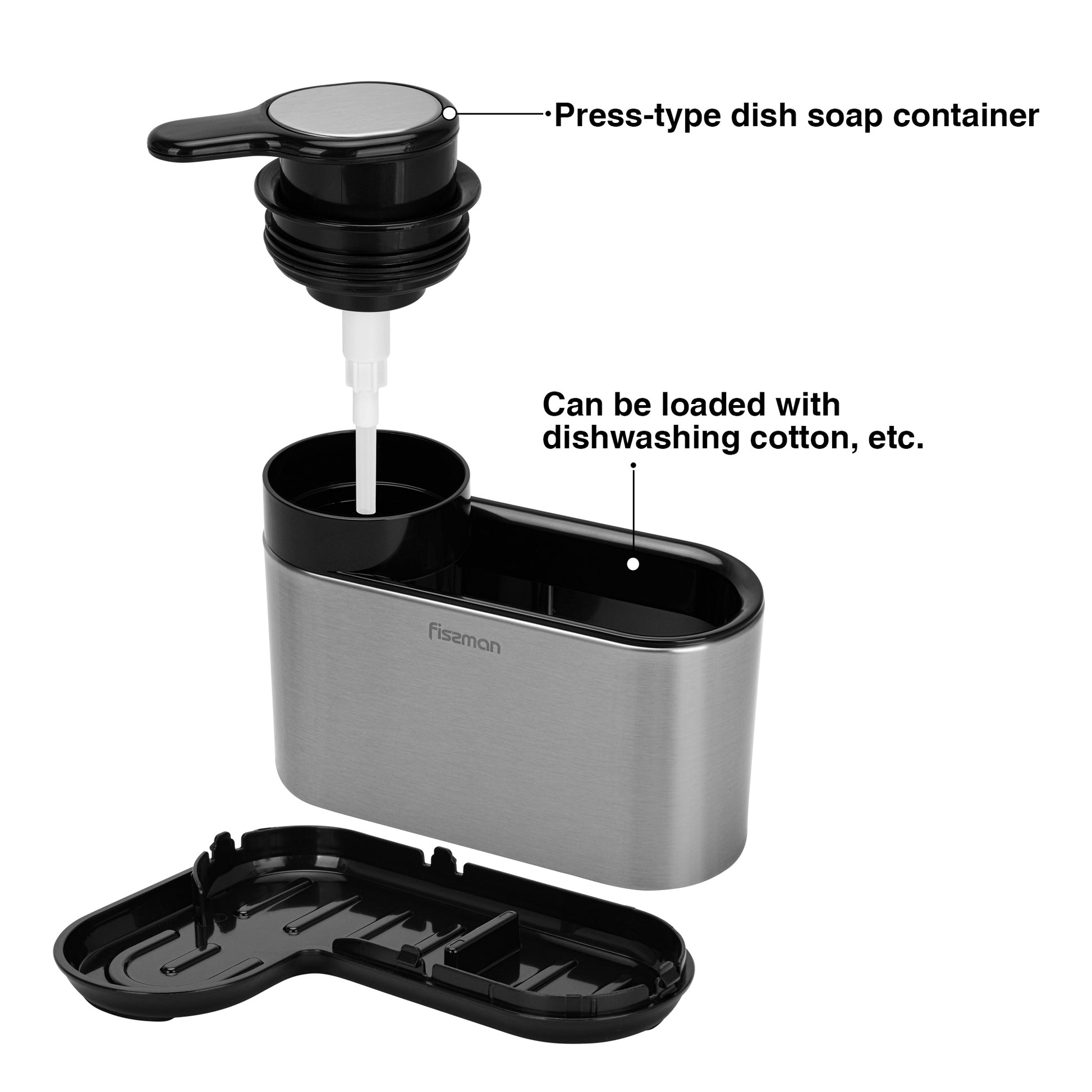 Dispensador de Lavalozas y Portaesponjas Gris con Negro 16x13x18cm Fissman