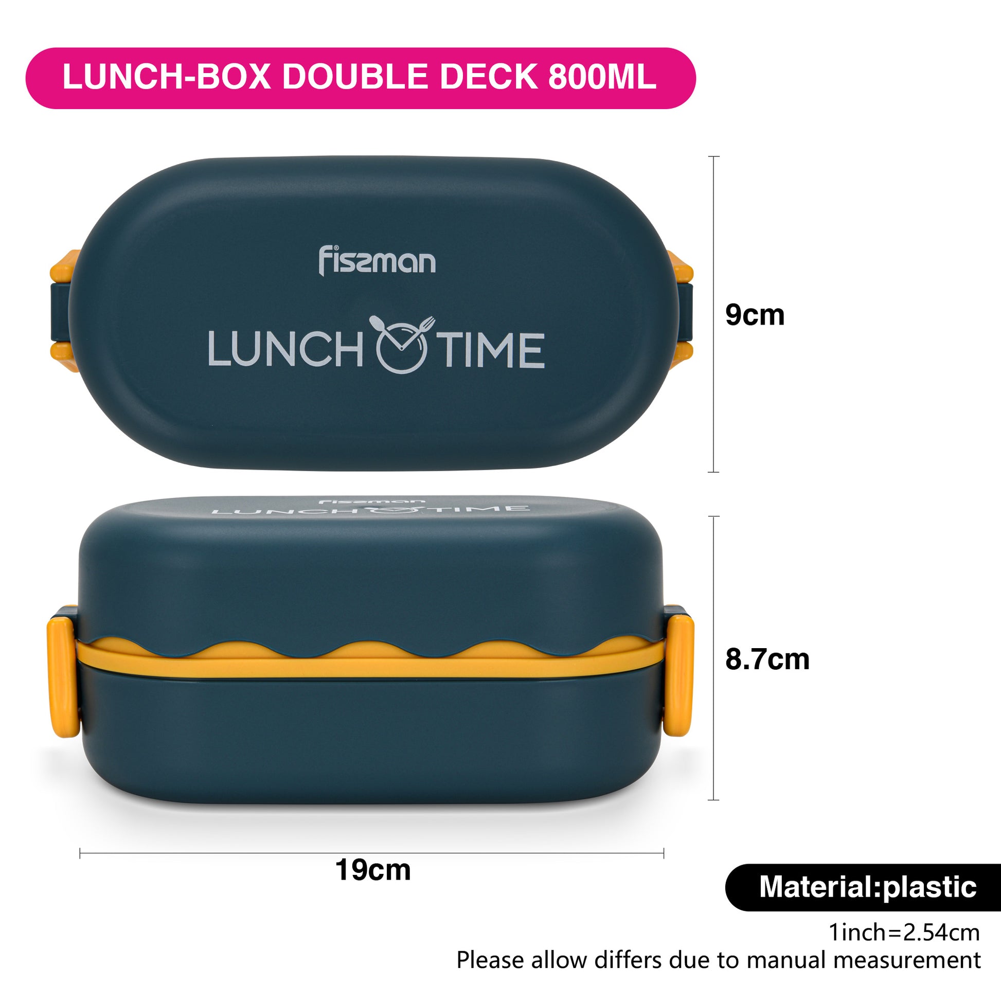 Tupper Doble 800ml Azul Fissman